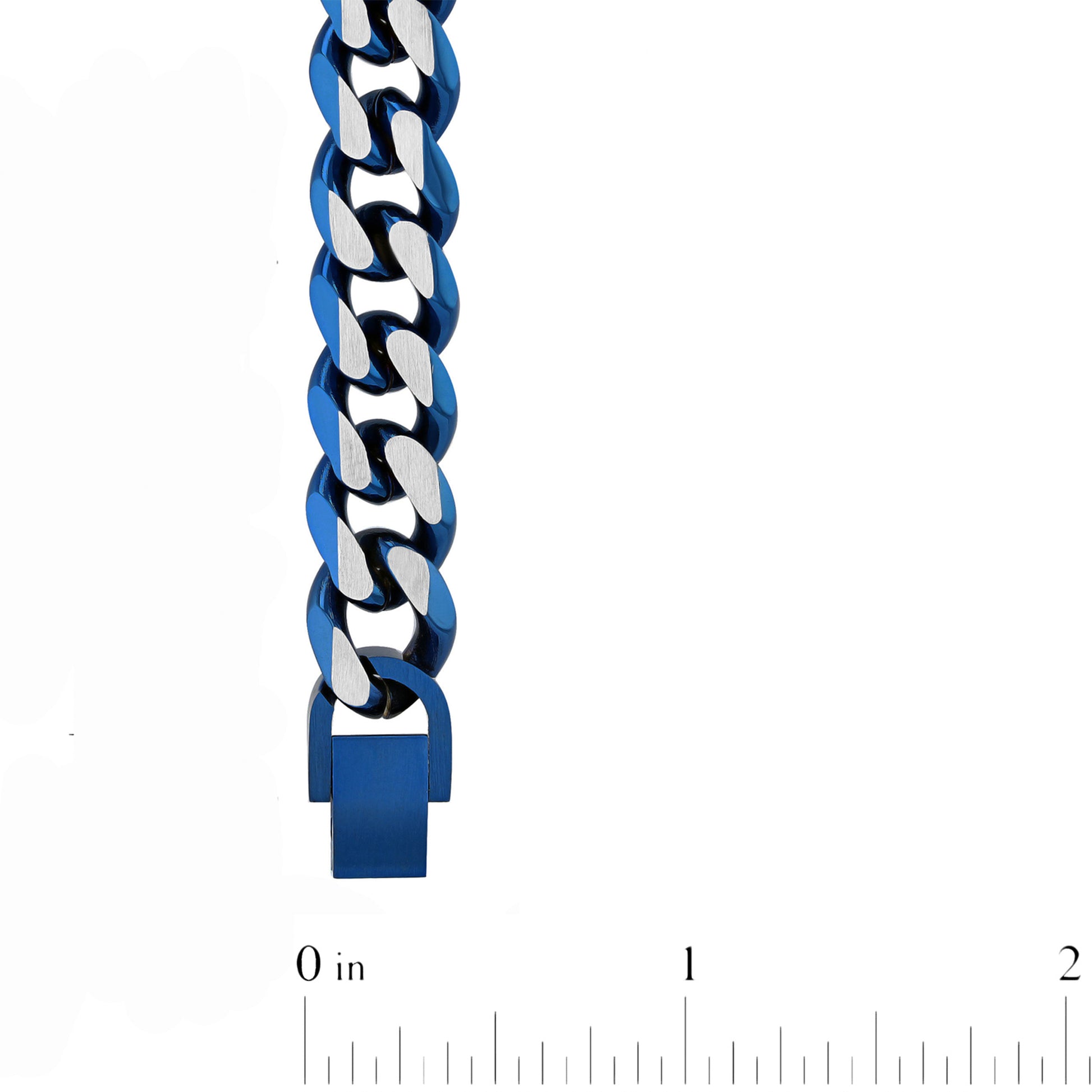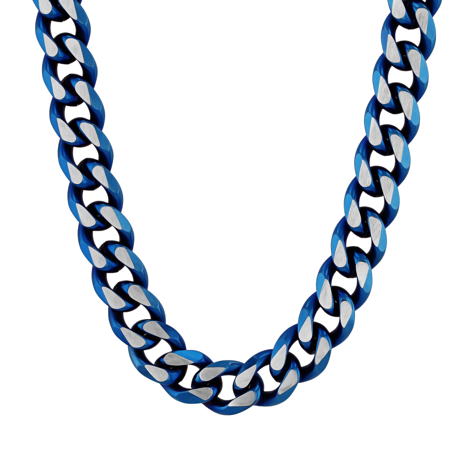 This beveled two-tone curb link chain is the preeminent example of rugged yet refined. The radiant blue ionic plating on this stainless steel chain will remain no matter what situation you find yourself in. This chain is a statement piece that speaks for itself.