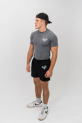 This shirt is a super high performance oriented shirt meant to emphasize the dirtiest of pumps. Constructed to not only be highly durable but also odor resistant and moisture wicking. This compression shirt is a must have for any aesthetic gym rat.