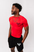 This shirt is a super high performance oriented shirt meant to emphasize the dirtiest of pumps. Constructed to not only be highly durable but also odor resistant and moisture wicking. This compression shirt is a must have for any aesthetic gym rat.